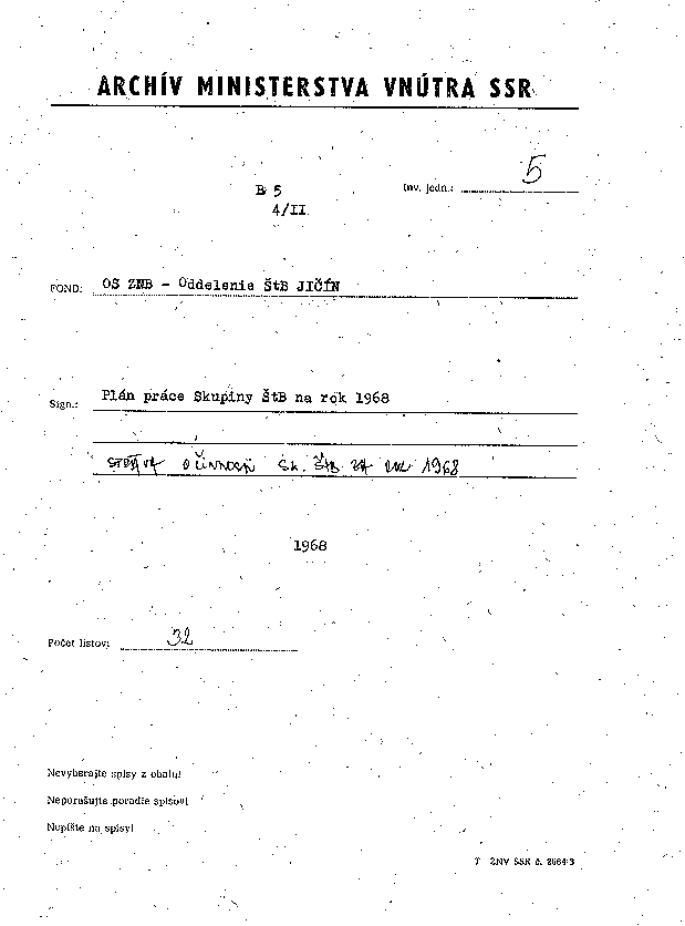 FOND: OS ZNB - Oddelenie ŠtB JIČÍN