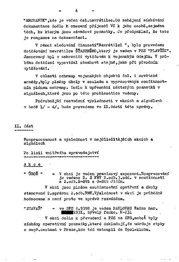 "STAVAŘ" - ve SPS č.9398 je veden PAVLOVEC Radko nar. XXXX.1931, bývalý funkc. K-231