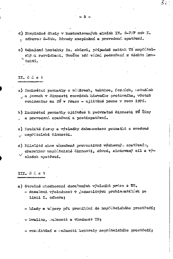 d) Nesplněné úkoly v kontrolovaných akcích II. S-FMV neb I. odborem S-Stb. Důvody nesplnění a provedená opatření.