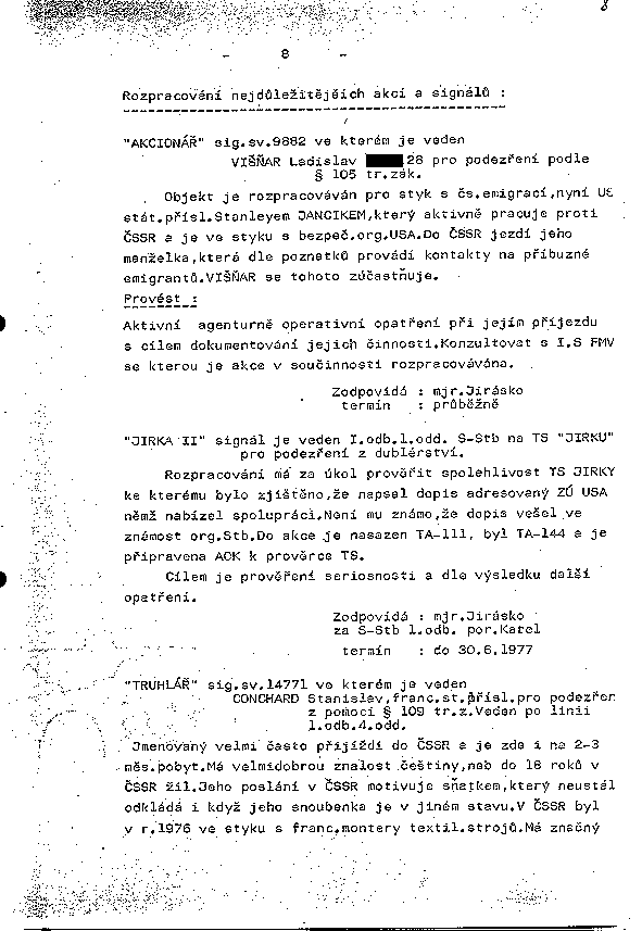 Předchozí list – Další list – Čistý text – Dokumenty – Návod – Vyhledávání – Archiv StB
