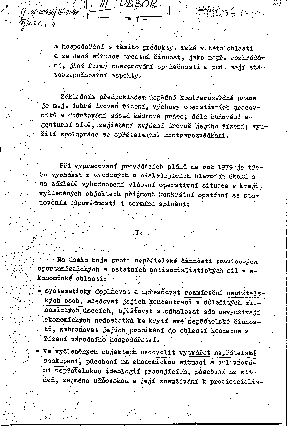 Plán práce na rok 1979 (II. a III. odbor)