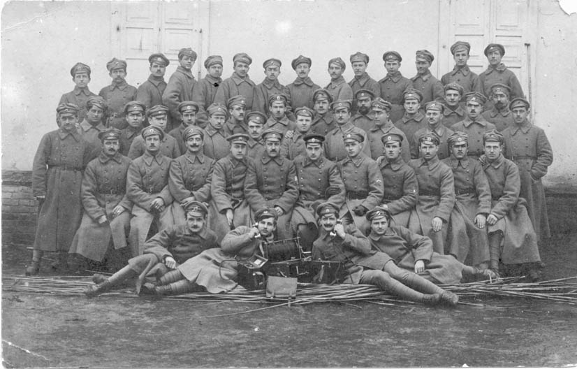 Uprostřed velitel školy, tehdejší poručík Bedřich Homola, po jeho stranách praporčíci Oleg Svátek a Otakar Zahálka. Za druhé světové války, oba již jako generálové, jako velitelé Obrany národa byli zatčeni a popraveni. Generál Homola se aktivně zúčastnil odhalení a likvidace puče slovenských nacionalistů v březnu 1939. Dodnes je tato akce Slováky nazývána "Homolův puč".