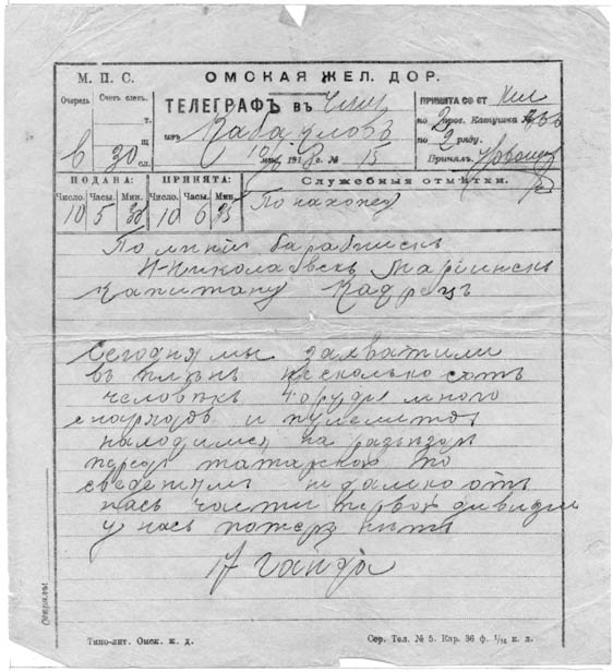 Dnes jsme vzali do zajetí několik set lidí, 4 děla, mnoho nábojů a kulometů. Jsme na zastávce před Tatarskou. Podle zpráv jsou nedaleko jednotky 1. divize. Ztráty nemáme.