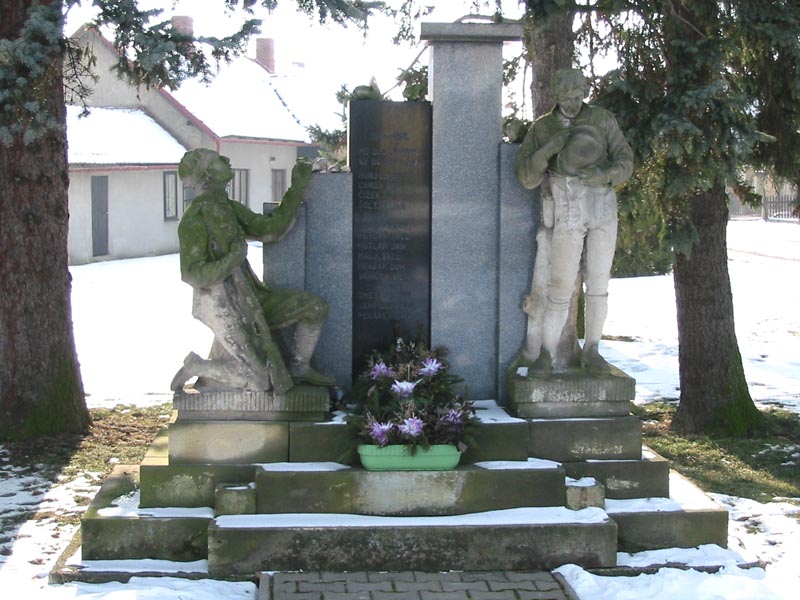 | Fotografie: | Nové (17/02/2003): Detail (na této stránce), celek, deska s nápisem a jmény. Archiv: pomník (bez datace), pomník (bez datace), celek (26/03/1999). |