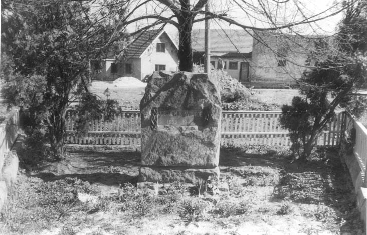 | Fotografie: | Nové (15/02/2003): Detail (na této stránce), celek, zadní strana. Archiv: s dřevěným plůtkem (1987), současný stav (11/09/1998). |