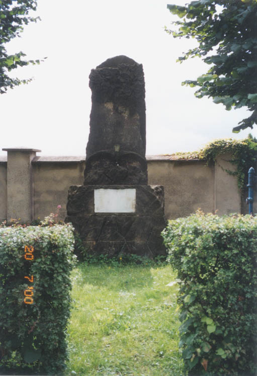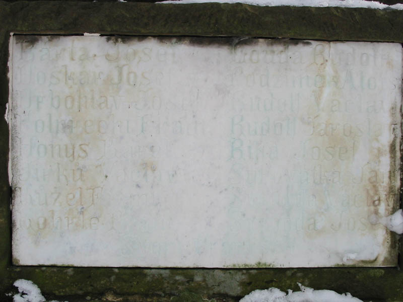 | Fotografie: | Nové (15/02/2003): Detail (na této stránce), celek, deska se špatně čitelným nápisem. Archiv: současný stav (20/07/07/2000). |