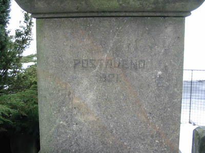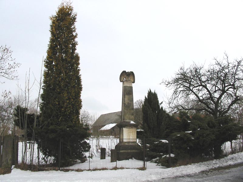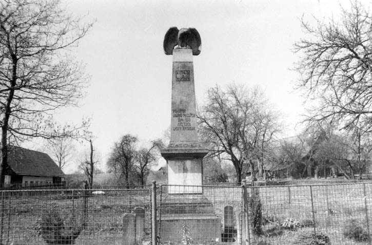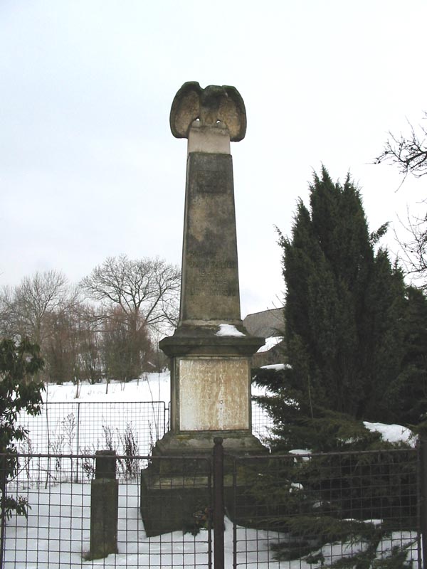 | Fotografie: | Nové (15/02/2003): Detail (na této stránce), celek, jména, nápis vpředu, nápis nahoře, nápis vzadu, detail provedení a nasazení orlice. Archiv: bez zeleně (1987), jména (1987), současný stav (25/08/1998). |