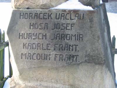 | Fotografie: | Nové (16/02/2003): Detail (na této stránce), celek, jména vlevo, jména vpravo. Archiv: detail (20/07/2000). |