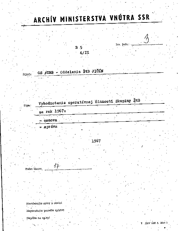 FOND: OS / ZNB - Oddelenie ŠtB JIČÍN