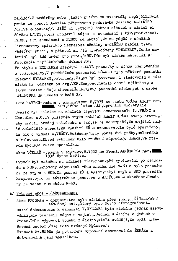 Akce PROGRAM - dokumentace byla získána přes spol. JIŘÍHO - získal závadový mat., který bylo možno ofotografovat.