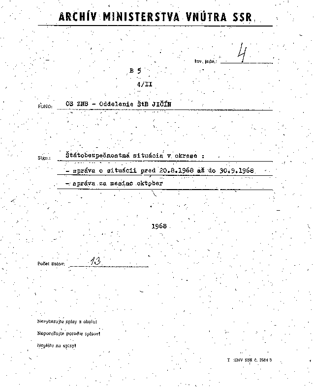 Fond: OS ZNB - Oddelenie ŠtB JIČÍN
