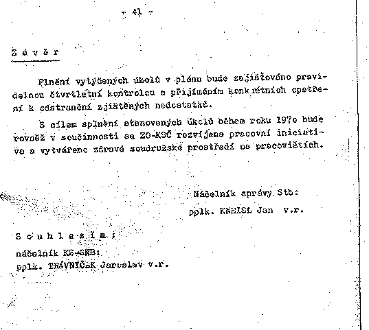 S cílem splnění stanovených úkolů během roku 1970 bude rovněž v součinnosti za ZO-KSČ rozvíjena pracovní iniciativa a vytvářeno zdravé soudružské prostředí na pracovištích.