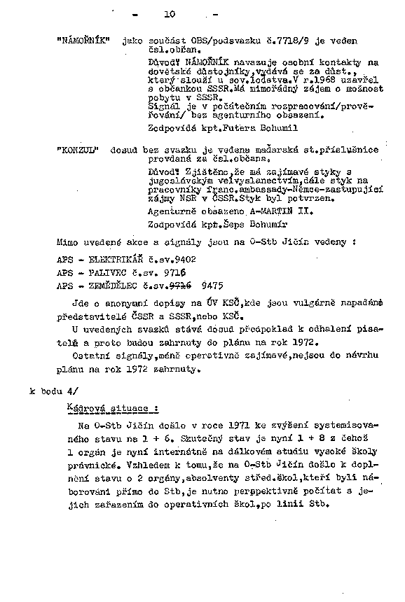 Ostatní signály, méně operativně zajímavé, nejsou do návrhu plánu na rok 1972 zahrnuty.