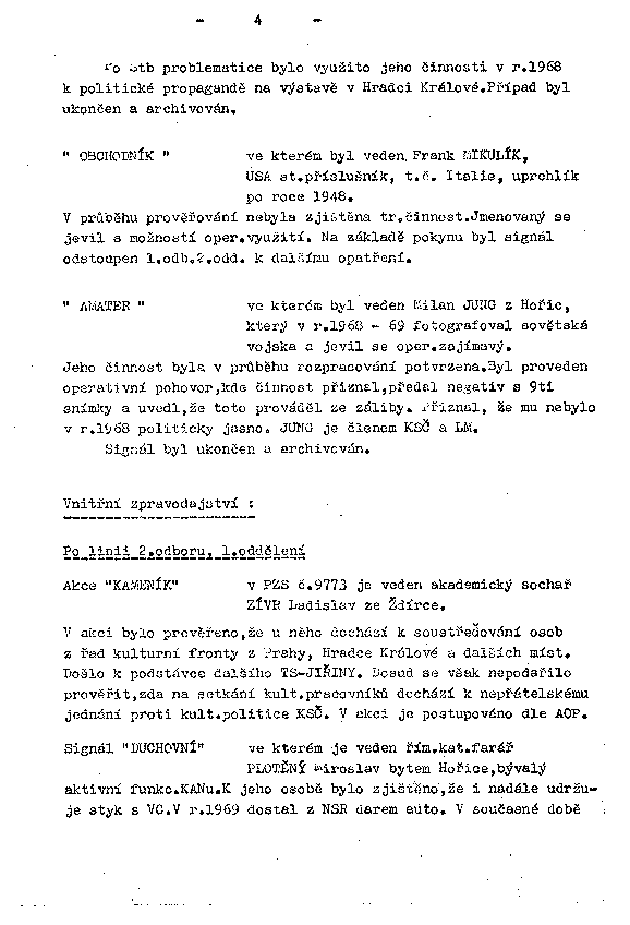 "AMATER" ve kterém byl veden Milan JUNG z Hořic, který v r. 1968 - 69 fotografoval sovětská vojska a jevil se oper.zajímavý.