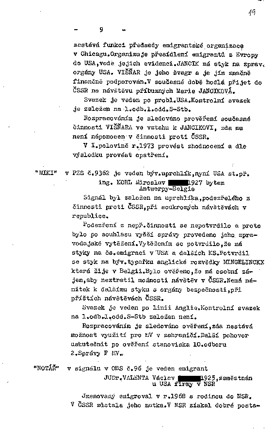 "MIKI" v PZS č.9362 je veden býv.uprchlík, nyní USA st.př.