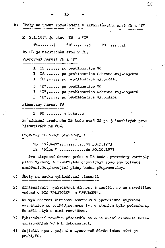 2) Do vyhledávací činnosti zahrnout i operativně zajímavé navrátilce po r.1948, zejména ty, u kterých bylo podezření, že měli styk s cizí rozvědkou.