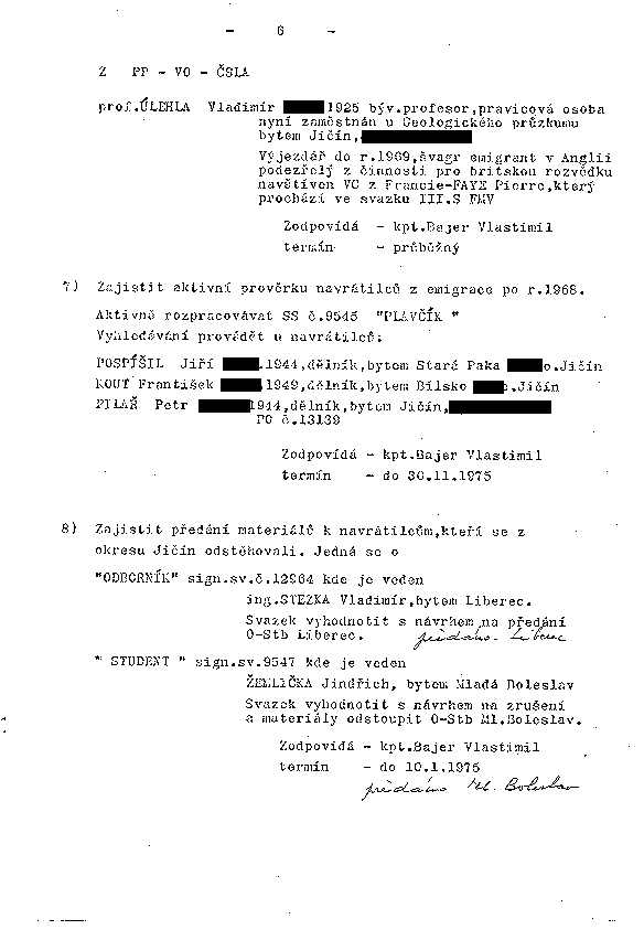 7) Zajistit aktivní prověrku navrátilců z emigrace po r.1968.