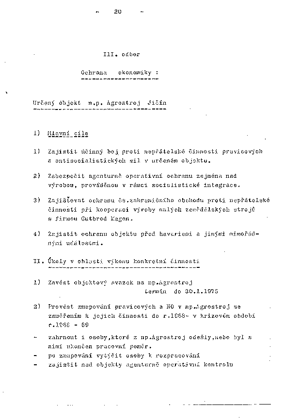 1) Zajistit účinný boj proti nepřátelské činnosti pravicových a antisocialistických sil v určeném objektu.