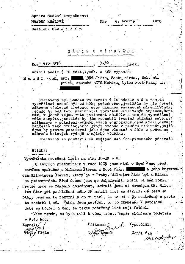 Předchozí list – Další list – Čistý text – Dokumenty – Návod – Vyhledávání – Archiv StB