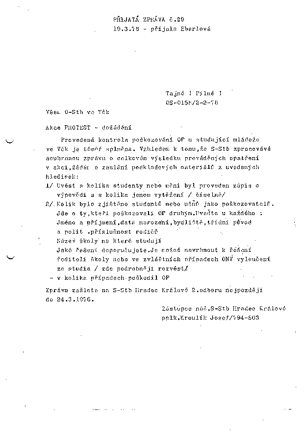 Akce Protest: Přijatá zpráva č. 29