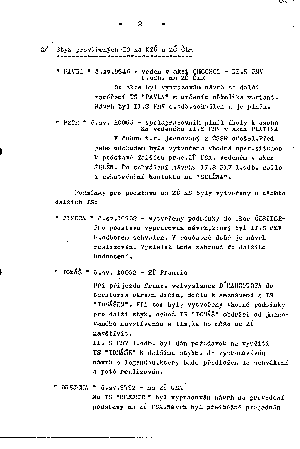 Při příjezdu franc. velvyslance D´HARGOURTA do teritoria okresu Jičín, došlo k seznámení s TS "TOMÁŠEM". Při tom byly vytvořeny vhodné podmínky pro další styk, neboť TS "TOMÁŠ" obdržel od jmenovaného navštívenku s tím, že ho může na ZÚ navštívit.