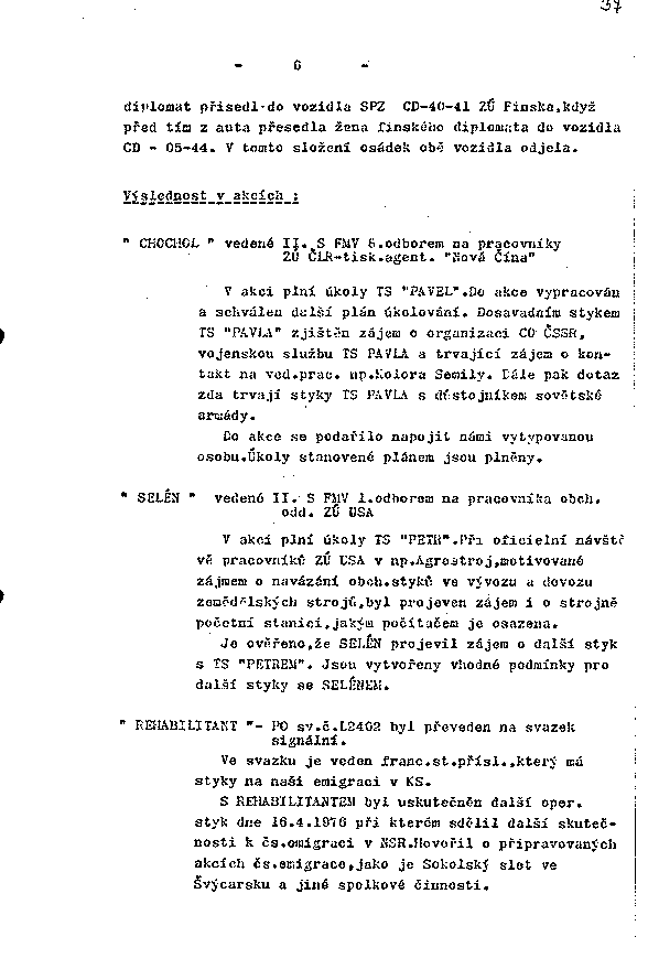 "SELÉN" vedené II. S FMV 1.odborem na pracovníka obch. odd. ZÚ USA