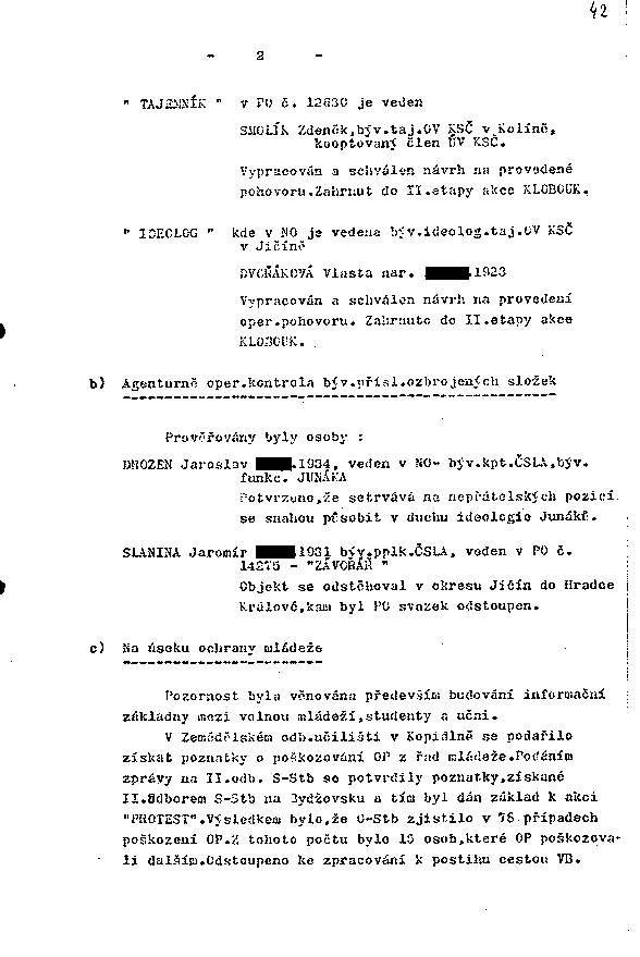 "IDEOLOG" kde v NO je vedena býv. ideolog. taj. OV KSČ v Jičíně