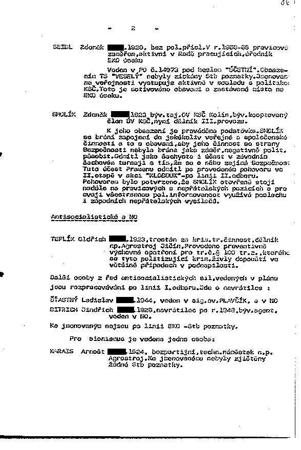 Další osoby z řad antisocialistických sil, vedených v plánu jsou rozpracováváni po linii I.odboru. Jde o navrátilce :