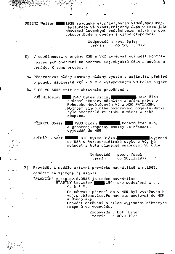 Předchozí list – Další list – Čistý text – Dokumenty – Návod – Vyhledávání – Archiv StB