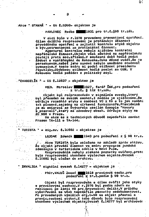 Předchozí list – Další list – Čistý text – Dokumenty – Návod – Vyhledávání – Archiv StB