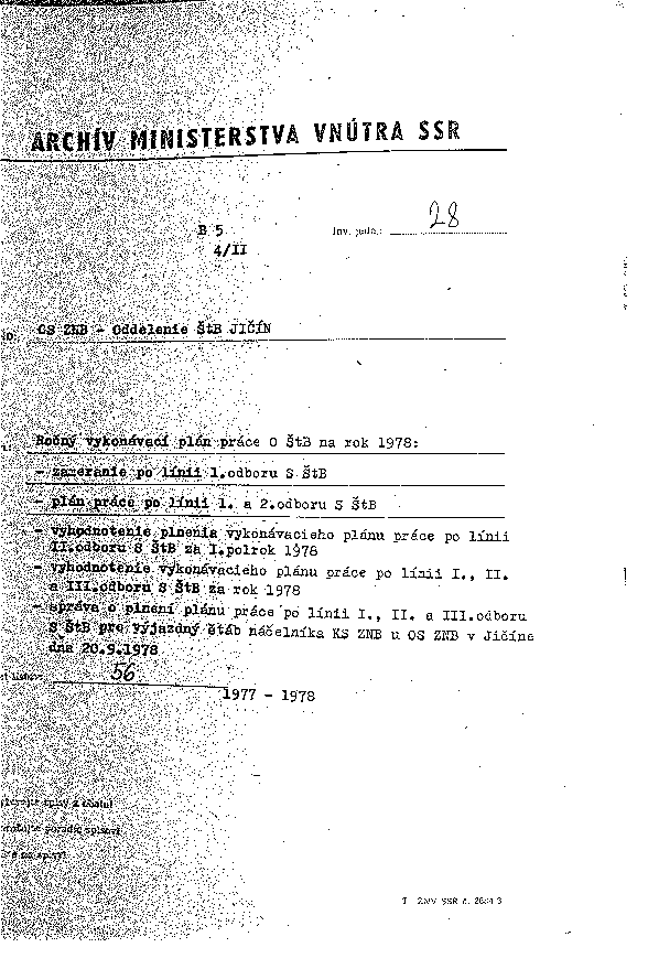 Odboj na Jičínsku – Archiv StB Jičín