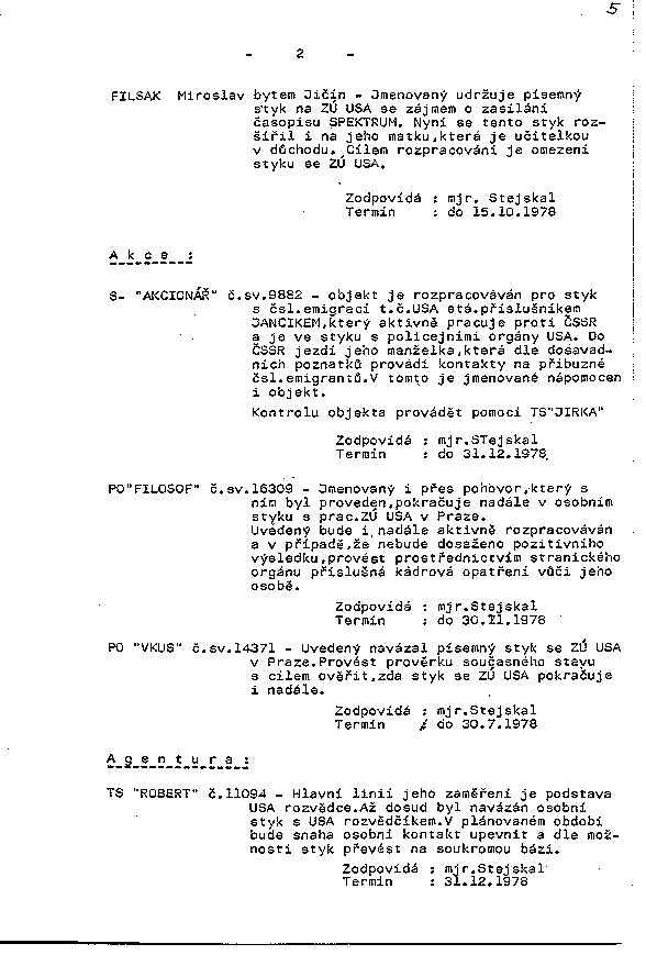 Plán práce pracoviště Stb Jičín po linii I. odboru na rok 1978