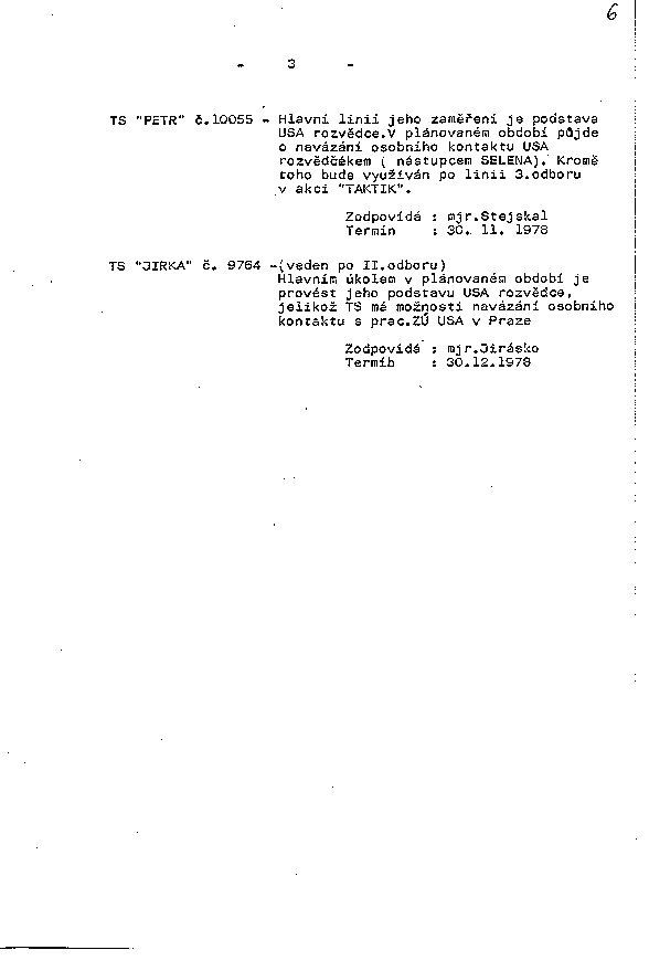 Plán práce pracoviště Stb Jičín po linii I. odboru na rok 1978
