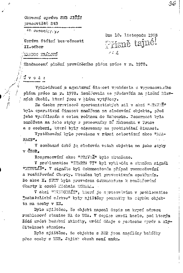 Zhodnocení plánu práce v r. 1978 po linii II. a III. odboru S-StB