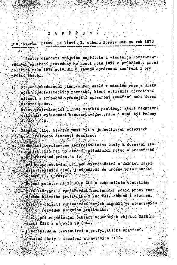 Zaměření pro tvorbu plánu po linii I. odboru Správy StB na rok 1979