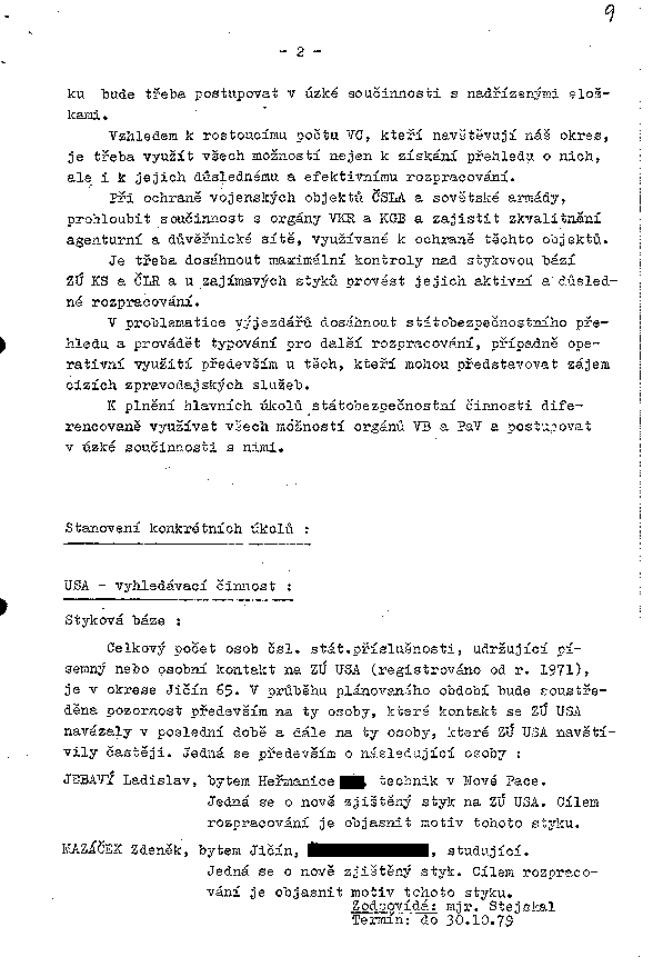 Plán práce pracoviště StB Jičín po linii I. odboru na rok 1979
