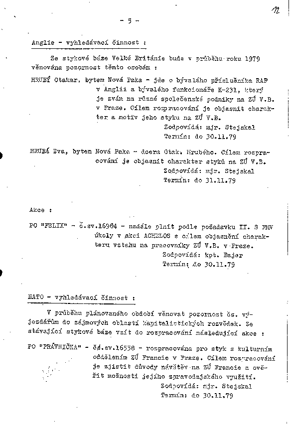 Plán práce pracoviště StB Jičín po linii I. odboru na rok 1979
