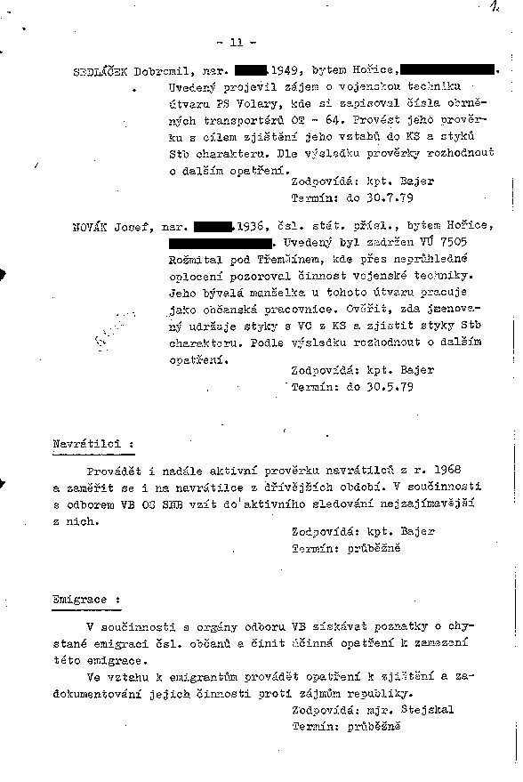 Plán práce pracoviště StB Jičín po linii I. odboru na rok 1979