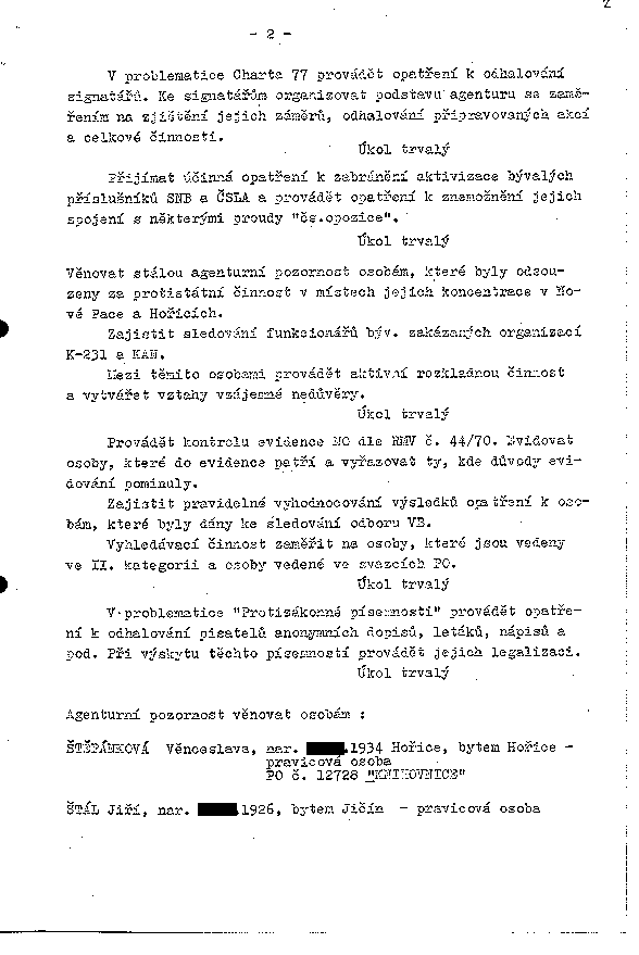 Předchozí list – Další rok – Čistý text – Dokumenty – Návod – Vyhledávání – Archiv StB