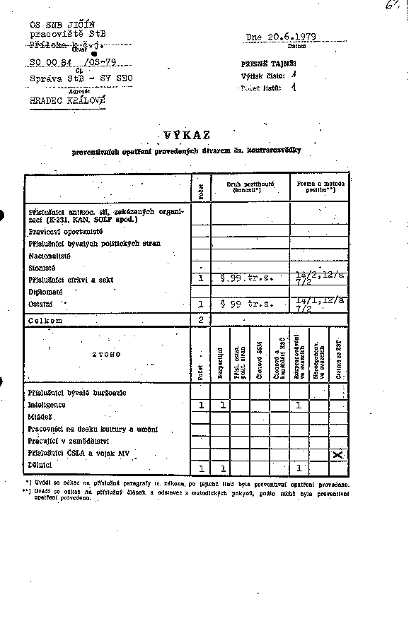 | Příslušníci církví a sekt | 1 | § 99 tr.z. | 14/2,12/a,7/2 | |||||