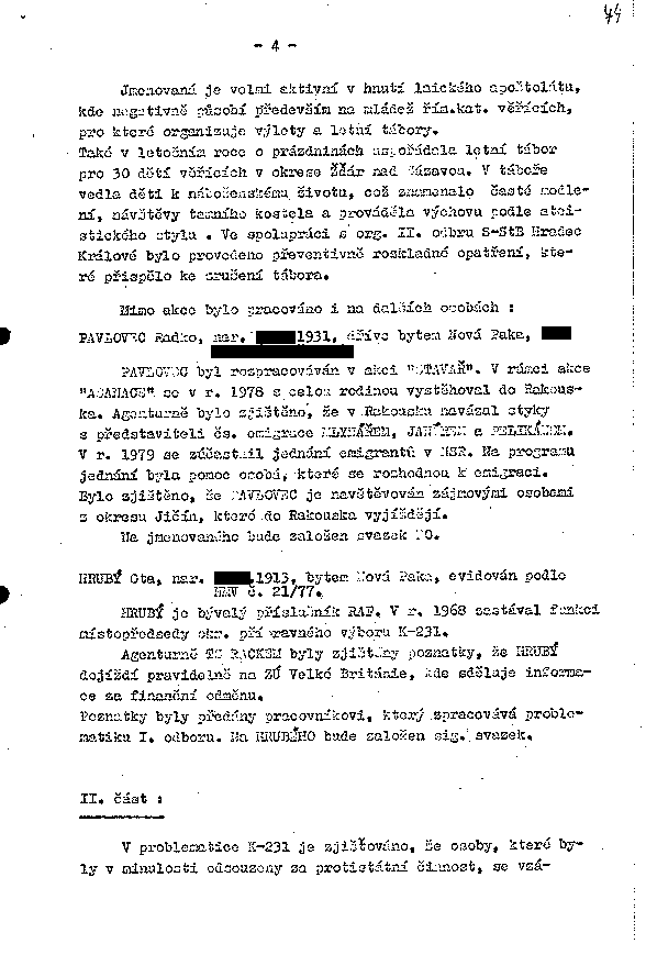 HRUBÝ Ota, nar. XXXX.1913, bytem Nová Paka, evidován podle NMV č. 21/77.